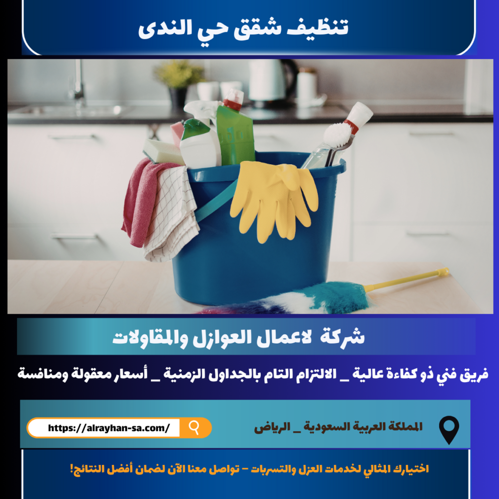 تنظيف شقق حي الندى حي الندى يتميز بالمجمعات السكنية الحديثة والشقق واسعة المساحة، مما يجعل التنظيف العميق.